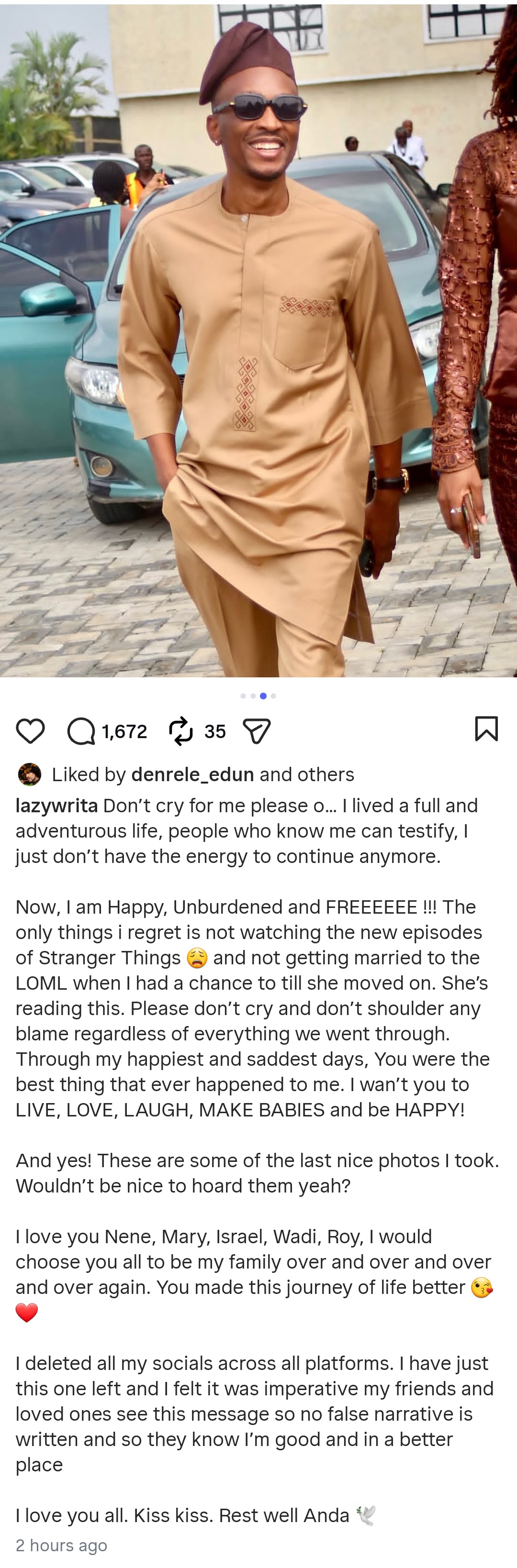 Anda, as friends call him, announced his de@th in a scheduled Instagram post. He hinted at being tired and ending it all.