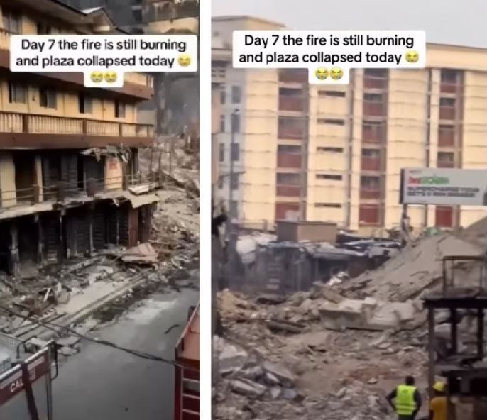 A woman has shared a disturbing update from the scene of the Great Nigeria Insurance House fire in the Balogun Market area of Lagos Island, reporting that bodies have been recovered even as the blaze continues days after it first broke out.
