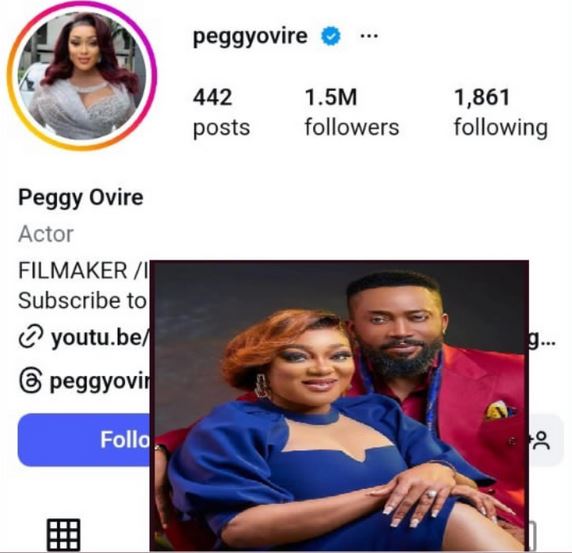 Popular Nollywood actress Peggy Ovire has removed her husband Frederick Leonard’s name from her Instagram bio.