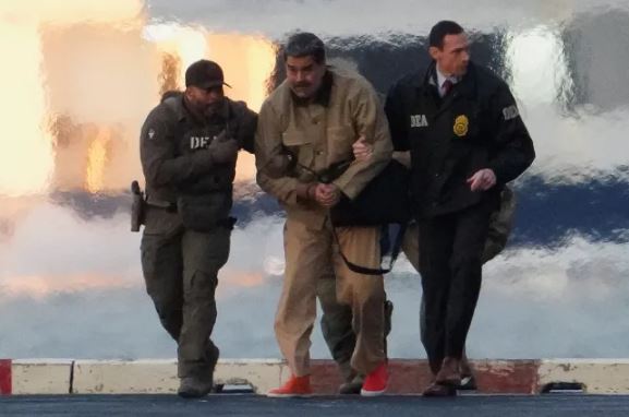 Maduro, who ruled Venezuela with an iron grip for 12 years, looked powerless as he was led by the arms by federal agents away from the helicopter after it landed.