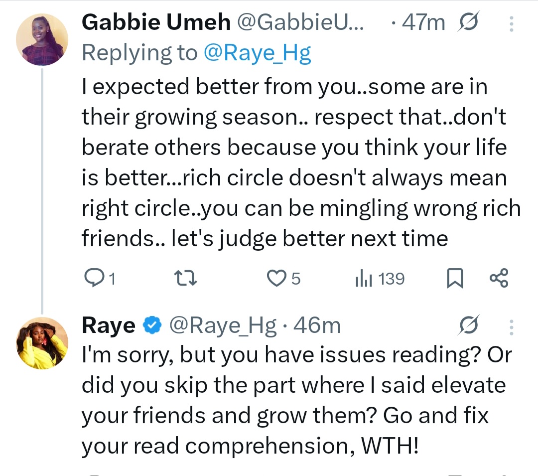 Ushie Rita Uguamaye, popularly known as Raye, has stirred widespread discussion with her views on friendship.