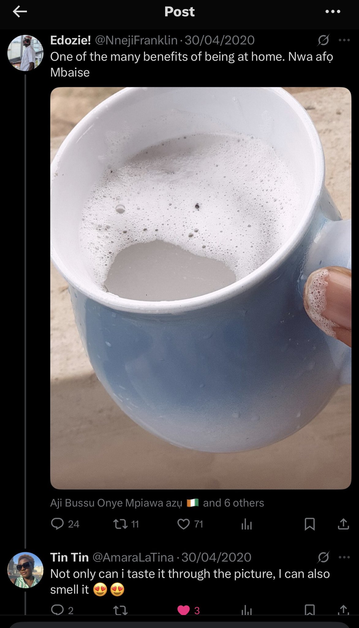 Amara commented on the post, writing: “Not only can I taste it through the picture, I can also smell it.”