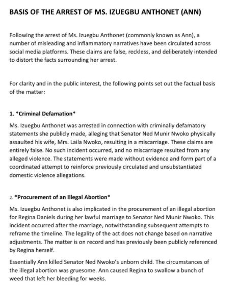 In a post he shared on his social media handle this morning, Nwoko gave reasons for calling for Ann's arrest.