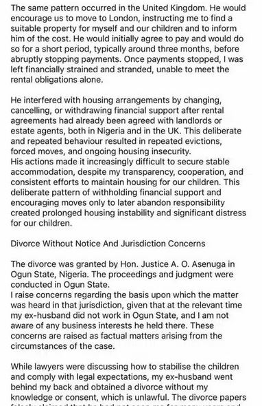 While in Nigeria, she alleged that he often refused to pay for the children’s upkeep or would agree to support them for a short time before stopping without warning.