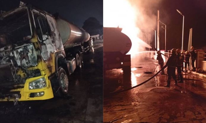 He said, “Upon arrival, we met a MACK trailer tanker loaded with 45,000litres capacity of premium motor spirit (PMS) and two underground tanks engulfed by fire.