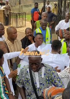 In a video which captured the development, the young man was seen confronting his father and denying him access to the venue.