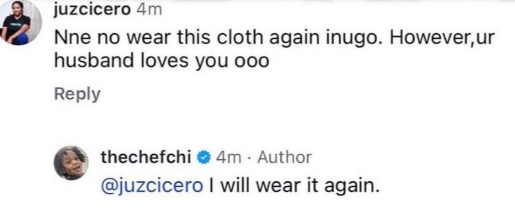 However, one follower wrote: "Nne no wear this cloth again inugo. However, your husband loves you ooo."