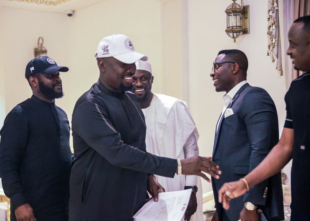 VIDEO: Seyi Tinubu visits businessman Obi Cubana and presents a letter recognising his appointment as City Boy Movement Regional Director for South-East. The occasion saw the two men singing the President Bola Tinubu's anthem, 'On your mandate we shall stand...".