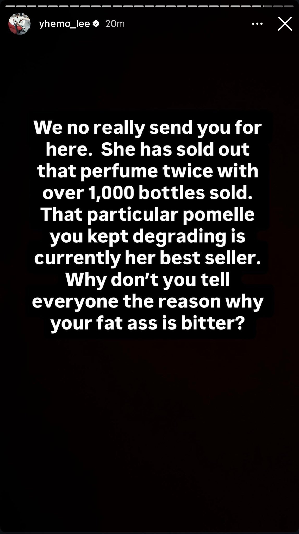 In a series of heated posts, Yhemolee accused Opeyemi of pretending to like him while making what he described as demeandng and unnecessary comments about the perfume.