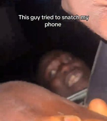 A video circulating on social media has captured a tense moment when a suspected phone snatcher narrowly avoided serious injury after an attempted theft failed in slow-moving traffic.