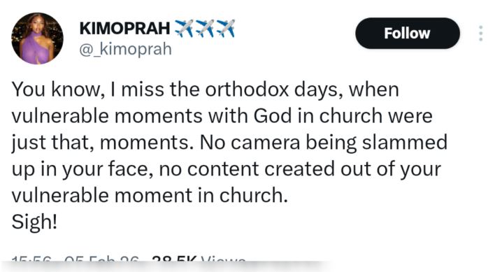 BBNaija star KimOprah has sparked online discussions after sharing her views on how church worship has evolved over the years.