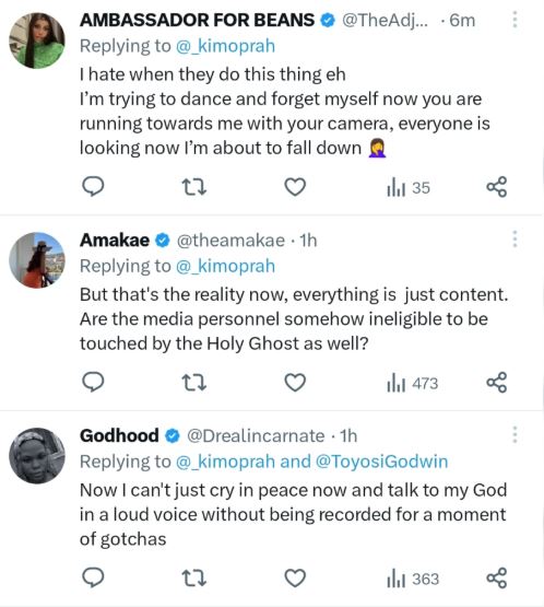 Many X users agreed with her, sharing how uncomfortable it has become to fully worship without being conscious of cameras hovering around.