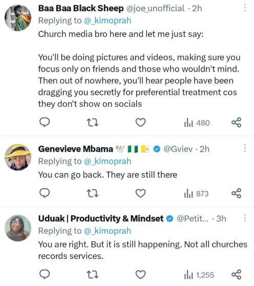 A few users, however, disagreed with KimOprah, arguing that churches that value privacy still exist and that not all services are recorded.