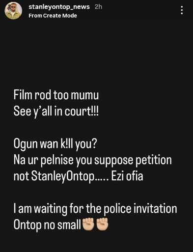 Stanley Ontop, the Nollywood filmmaker and media personality, has reacted to actor Frederick Leonard’s petition filed against him.
