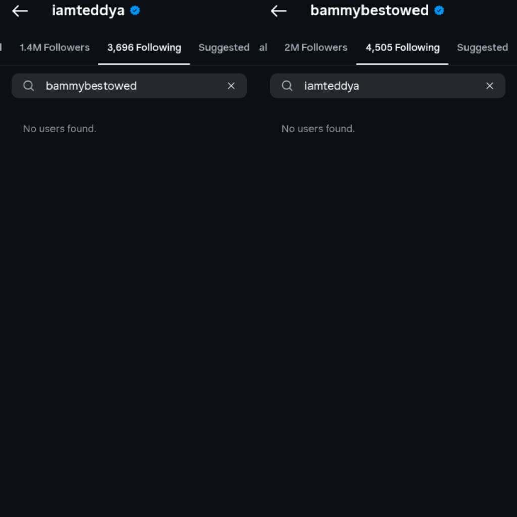 In what seems like a confirmation of the rumours, online sleuths noticed that the couple have unfollowed each other on Instagram, and Teddy A has deleted all traces of Bambam from his page.