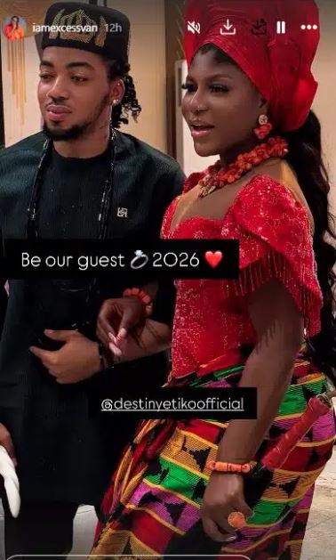 Confirming their relationship, Destiny Etiko’s new man, in a post on his Instagram story, shared a picture of the duo, urging the public to be their guests at the upcoming wedding.