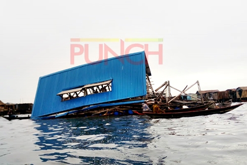 Just after a heavy rainstorm on Wednesday the Makoko Floating School in the Yaba area of Lagos State has collapsed.