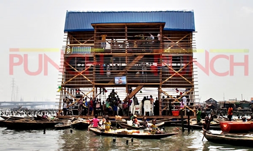 The make-shift high building which was designed by Nigerian architect, Kunlé Adeyemi, in collaboration with the Makoko Waterfront Community and completed in March 2013, had received global recognition, including the Design Museum’s Design of the Year Award.
