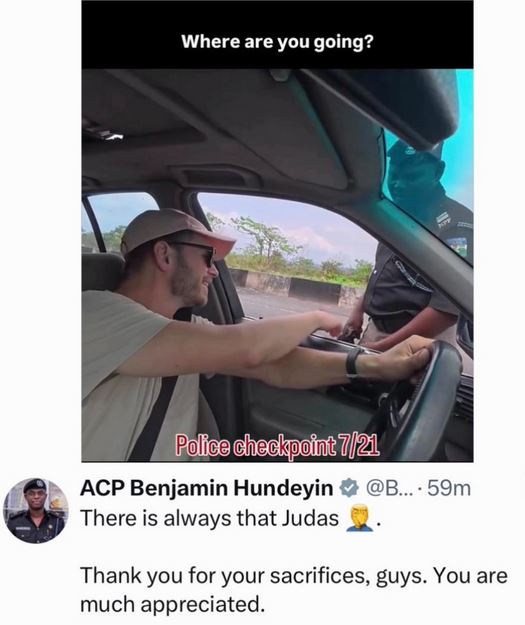 The spokesperson of the Nigeria Police Force, ACP Benjamin Hundeyin, has responded to a viral video showing a police officer allegedly asking a German traveler, Clement, for money while he was in transit.