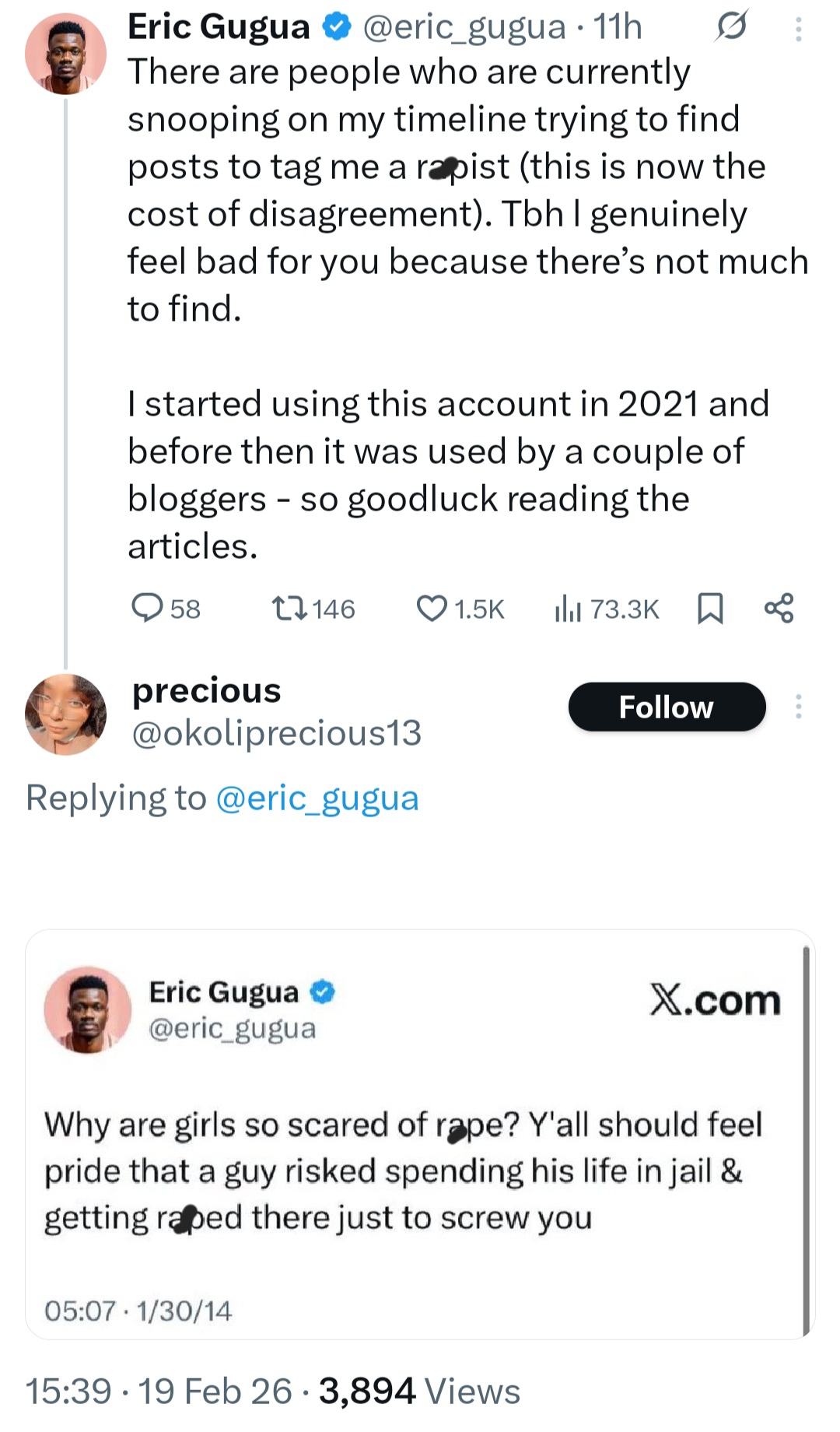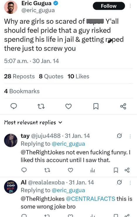 He wrote: "There are people who are currently snooping on my timeline trying to find posts to tag me a r@pist (this is now the cost of disagreement).