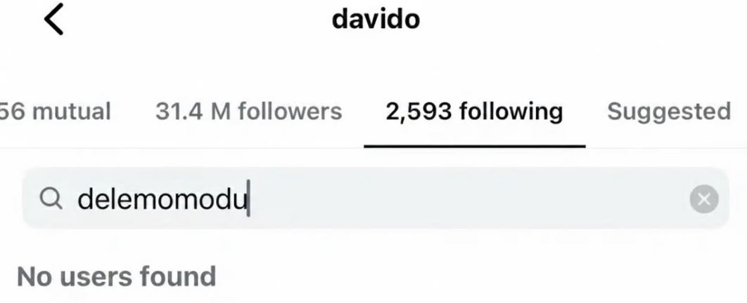 A check on Davido’s verified Instagram page on Wednesday showed that Momodu’s account was no longer listed among those he follows.
