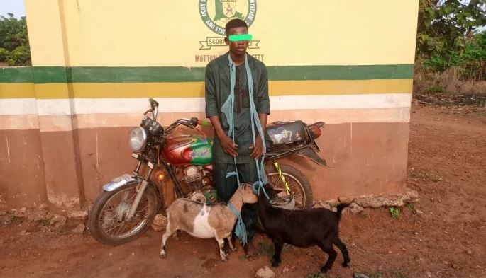Operatives of the Ogun State Community Social Orientation and Safety Corps (So-Safe Corps) have arrested a 27-year-old man in Ipokia Local Government Area for allegedly stealing three goats.