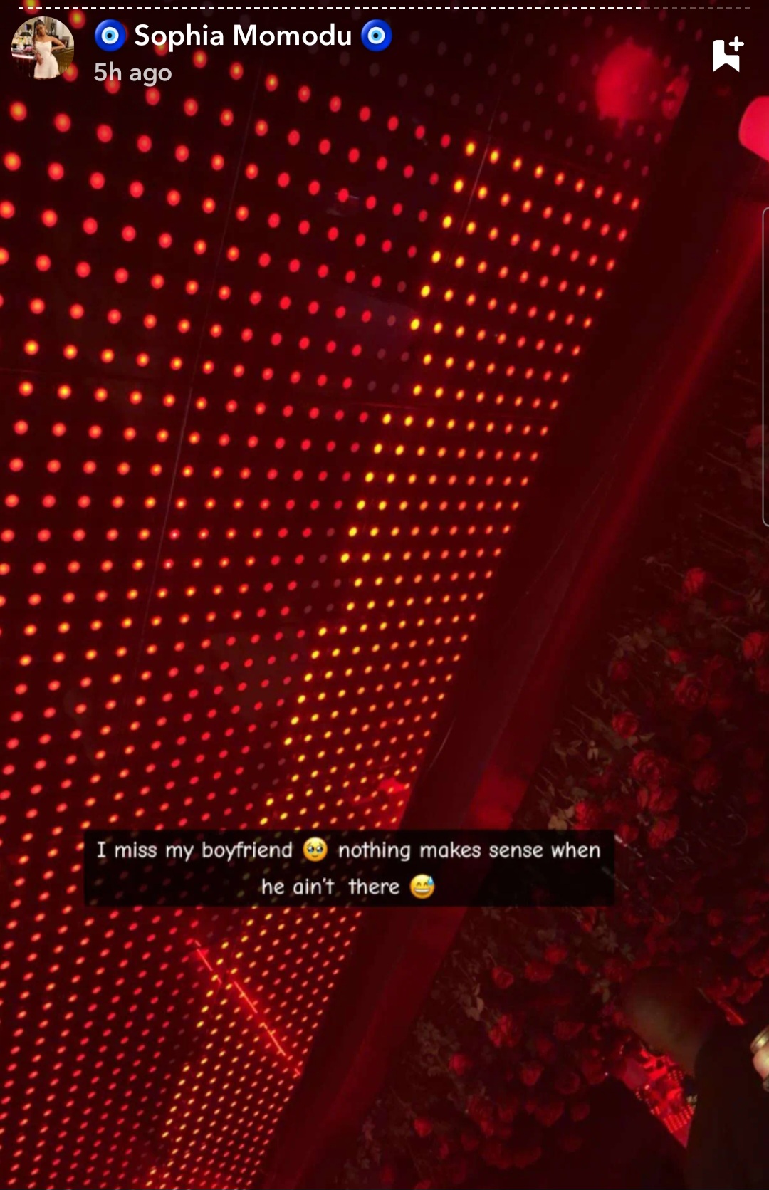 Sophia Momodu has openly expressed just how much she misses her boyfriend while being away from him.