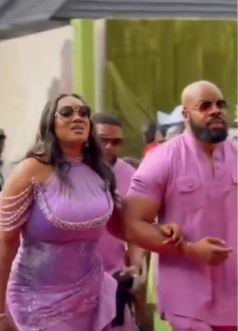The actress and Kachi were filmed wearing outfits made with matching purple material, believed to be the ashoebi for the event.