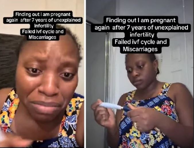 A woman has shared an emotional video capturing the moment she discovered she was pregnant after seven years of trying to conceive.