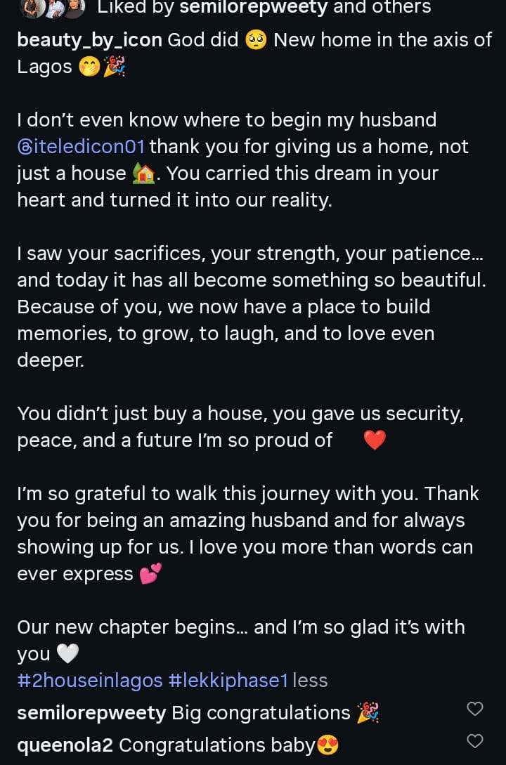 I don’t even know where to begin. My husband @iteledicon01, thank you for giving us a home, not just a house. You carried this dream in your heart and turned it into our reality.