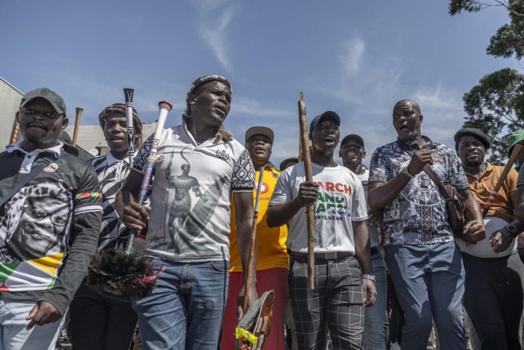 The protest was mobilised by several groups, including political parties and the controversial vigilante movement Operation Dudula, whose name translates to “push back” in Zulu.