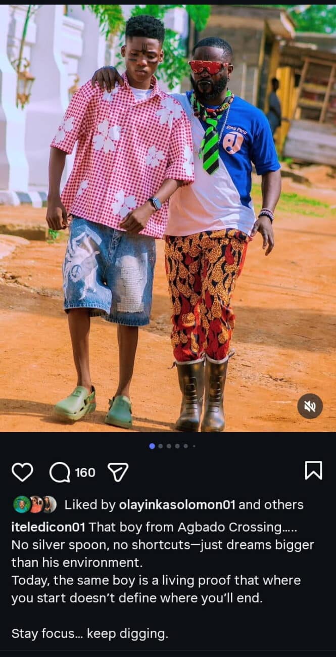Sharing his thoughts, he wrote: “That boy from Agbado Crossing… No silver spoon, no shortcuts—just dreams bigger than his environment.