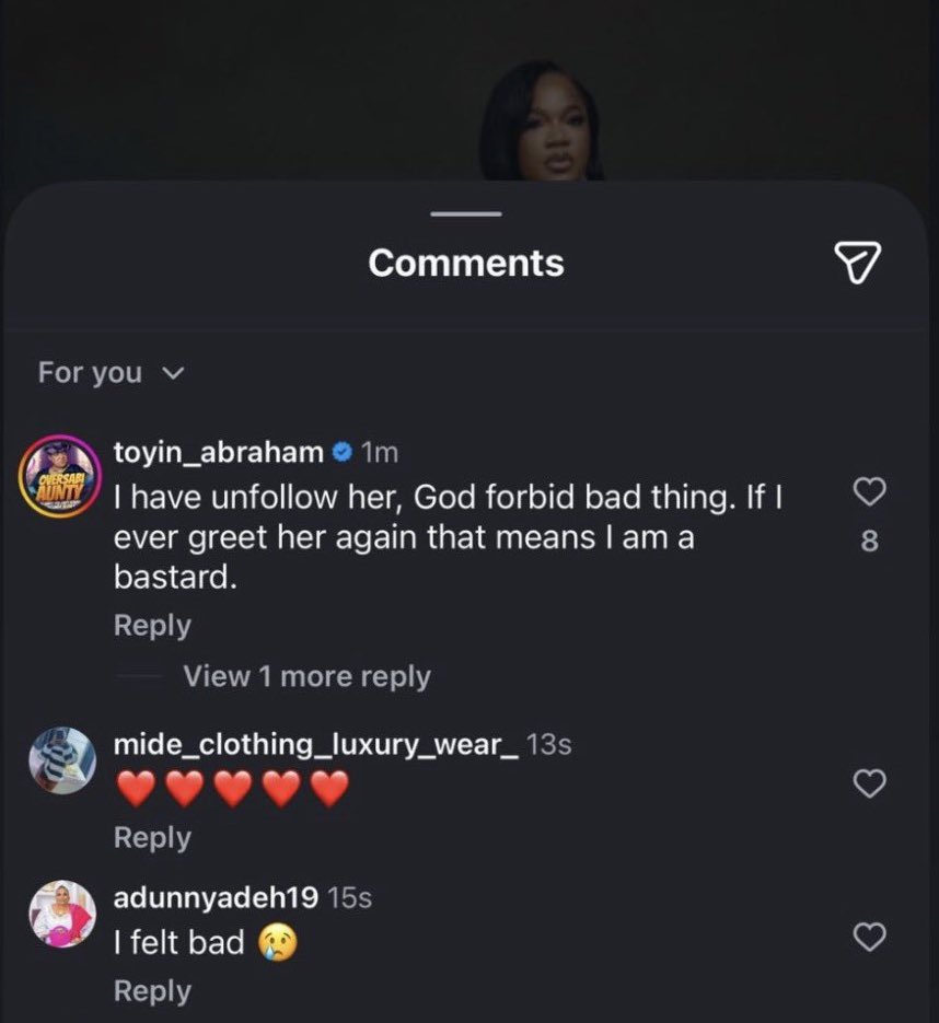 Reacting, Toyin wrote that she has unfollowed Funke and would never greet her again.