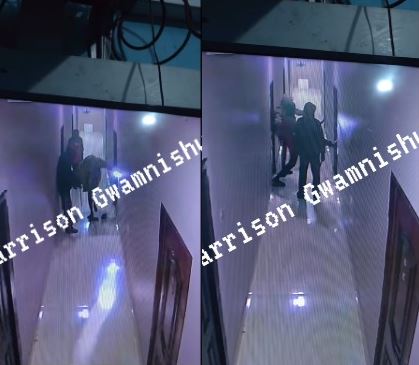 Harrison posted a CCTV video online showing the robbery attack and stated that a male customer was k!lled during the incident.