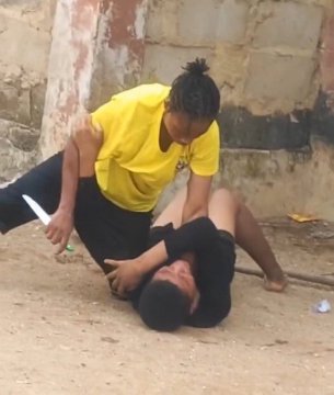 Following earlier beatings close to a compound entrance, a video of a mother in a yellow shirt straddling her 15-year-old daughter at 32 Tashoro Street near Ipaja with a knife above her appeared late on April 28.