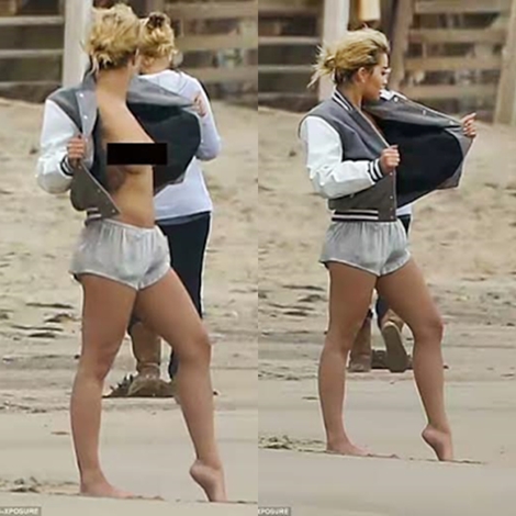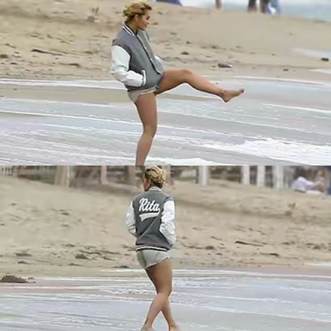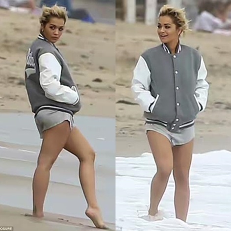 Rita Ora, has been pictured putting on a very raunchy display as she flashes her perky assets on Malibu beach for racy photo-shoot.