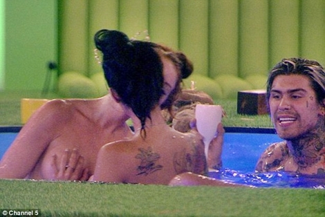 Heading to the pool with drinks in hand, house-mates - Laura, Evelyn, Marco and Andrew Tate, were clearly in high spirits. Though it wasn't long before things took a raunchy turn, as both the red-headed model and nightclub hostess took off their bikini tops.