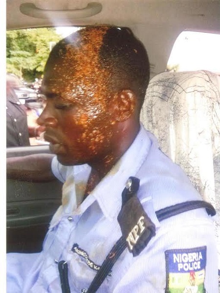 Daily Post reports that the suspect who was slammed with a three-count charge on June 13 at about 5.30 pm, is accused of pouring hot soup on Akingbade’s face and police uniform, and also attempted to snatch his service rifle.
