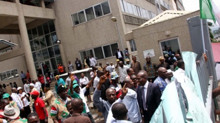 The workers in their hundreds stayed out of their offices from 8am when they resumed work and vowed not to attend to any official assignment until the arrival of the Minister of Finance, Mrs Kemi Adeosun.