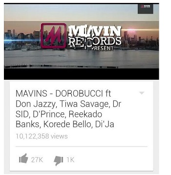 Popular video of the hit track "Dorobucci"from the stable of Mavin records has enjoyed a wealth of views on Youtube hitting 10 million since release.