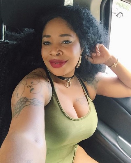 Former Nollywood actress, Afrocandy appears red-hot in a skin-tight dress that exposed the rear ends of her body.