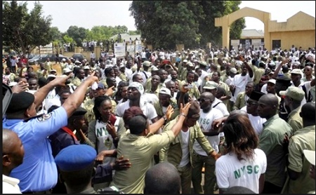 According to SaharaReporters, there was heightened tension on Wednesday at the National Youth Service Corps (NYSC) orientation camp in Karaye as angry corps members of Batch A, Stream 2 in Kano State staged a protest over the non-payment of their allowances.