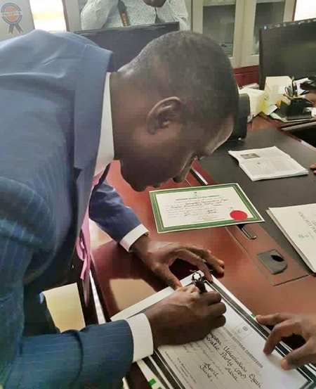 Photos of New Abia State Governor, Uche Ogah Receiving His Certificate of Return from INEC