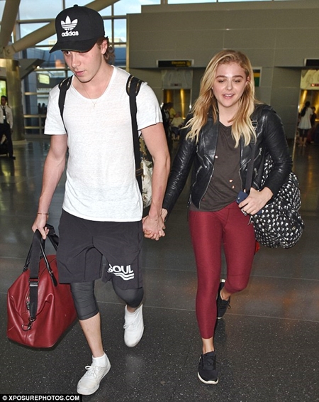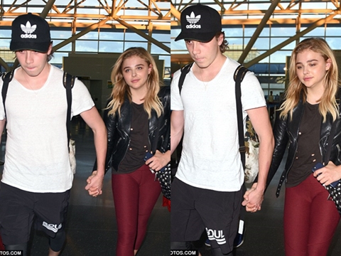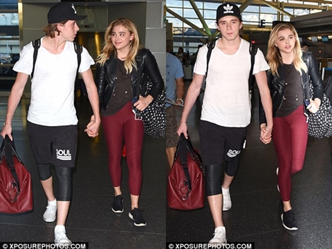 Brooklyn Beckham, the 17-year-old son of world famous football legend, David and Victoria Beckham, has been pictured with his 19-year-old hollywood actress lover, Chloe Grace Moretz on Wednesday as they held hands and gazed into each other's eyes at JFK Airport in New York City.