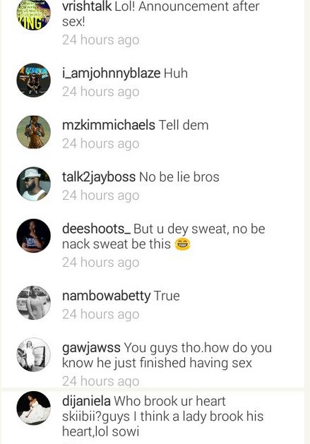 At first, some peeps said the photo was an after-s*x shot, but some others saw the emotional part of his statement and followed the heartbreak school of thought.