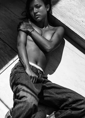 Karrueche Tran, Chris Brown's former girlfriend and then rival to Rihanna, shared pictures from her recent photo-shoot for Flaunt magazine - denim issue, where she took some topless shots...