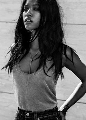 Karrueche Tran, former girlfriend of popular American R&B pop star, Chris Brown, posed topless for Flaunt magazine - denim issue.