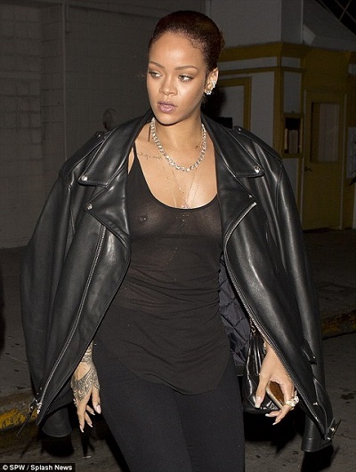Rihanna Shows Off Her Nipple Piercing As She Goes Braless in a See-through Vest Top (Photos)