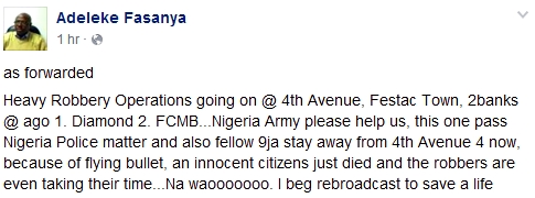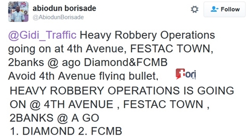 Suspected dare devil armed robbers attacked some commercial banks along 4th Avenue in Festac town, Lagos some hours ago. The incident is the second armed robbery attack in Festac town this year.