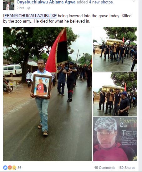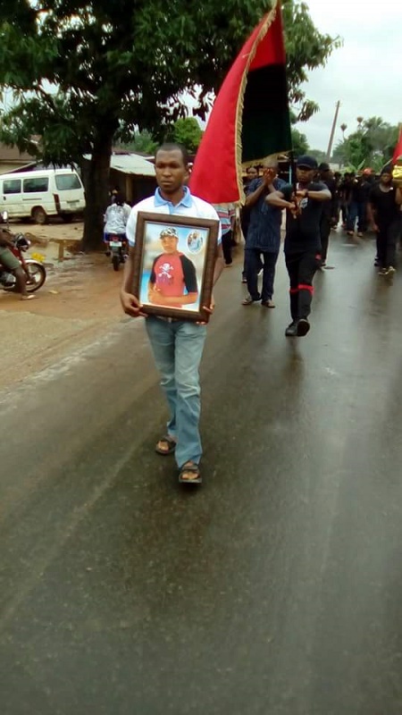Ifeanyichukwu Azubuike, a Biafran supporter who was shot dead during a pro-Biafra protest in Onitsha, Anambra state on the 30th of May has been laid to rest amid tears in his hometown in Umudim Okohia Umuna LGA in Imo state.